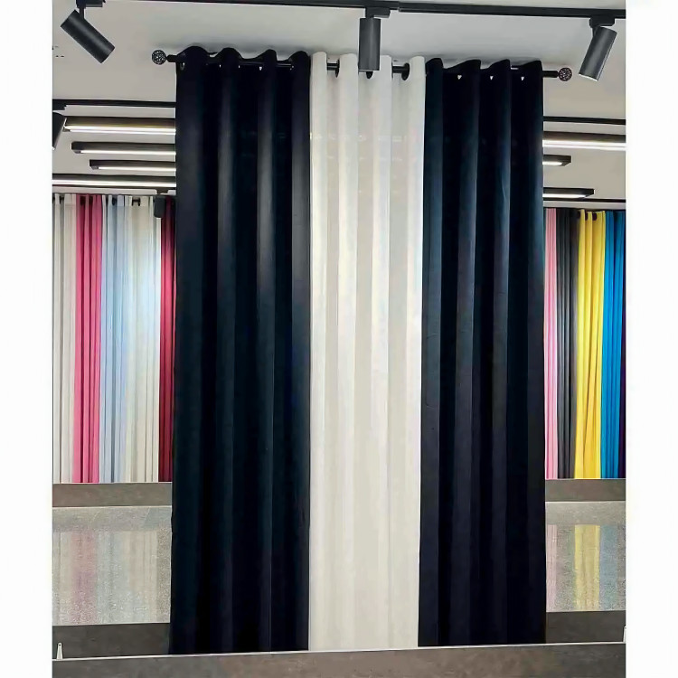 از پرده کتان مشکی می توانید به همراه رنگهای سرخابی – زرد – صورتی – نارنجی یا به همراه پرده حریر استفاده فرمایید .